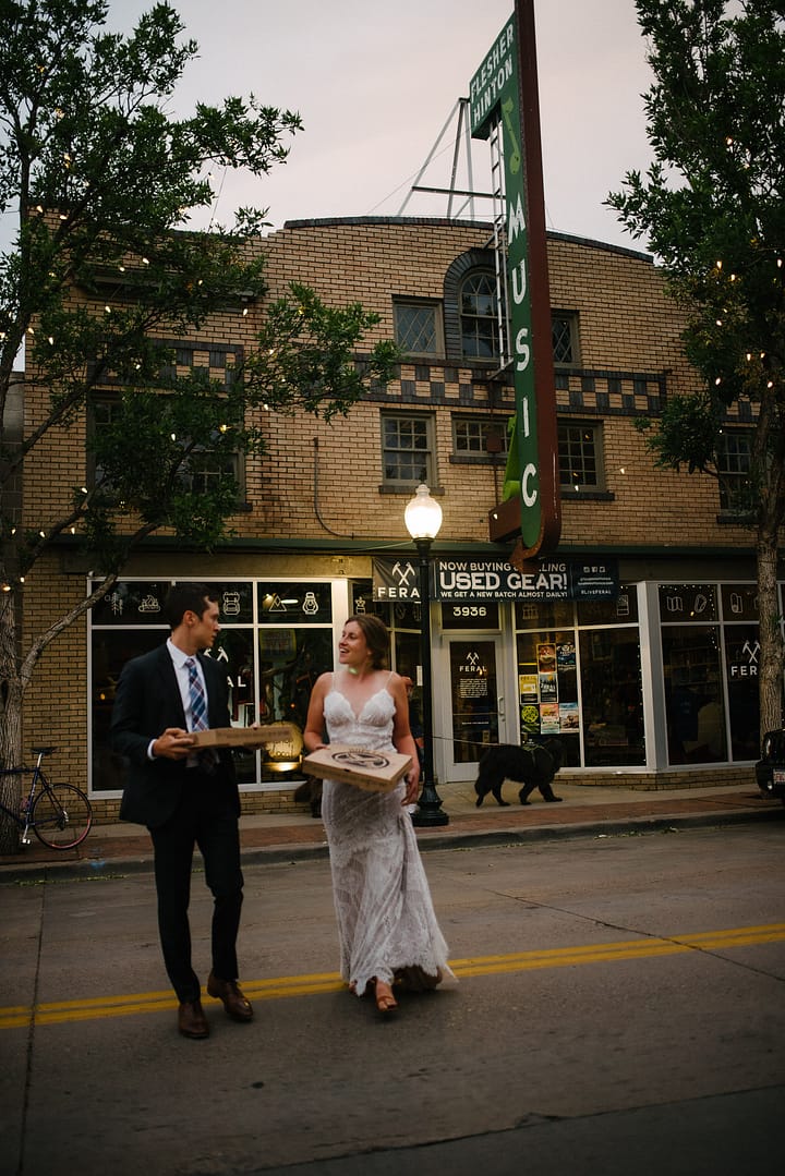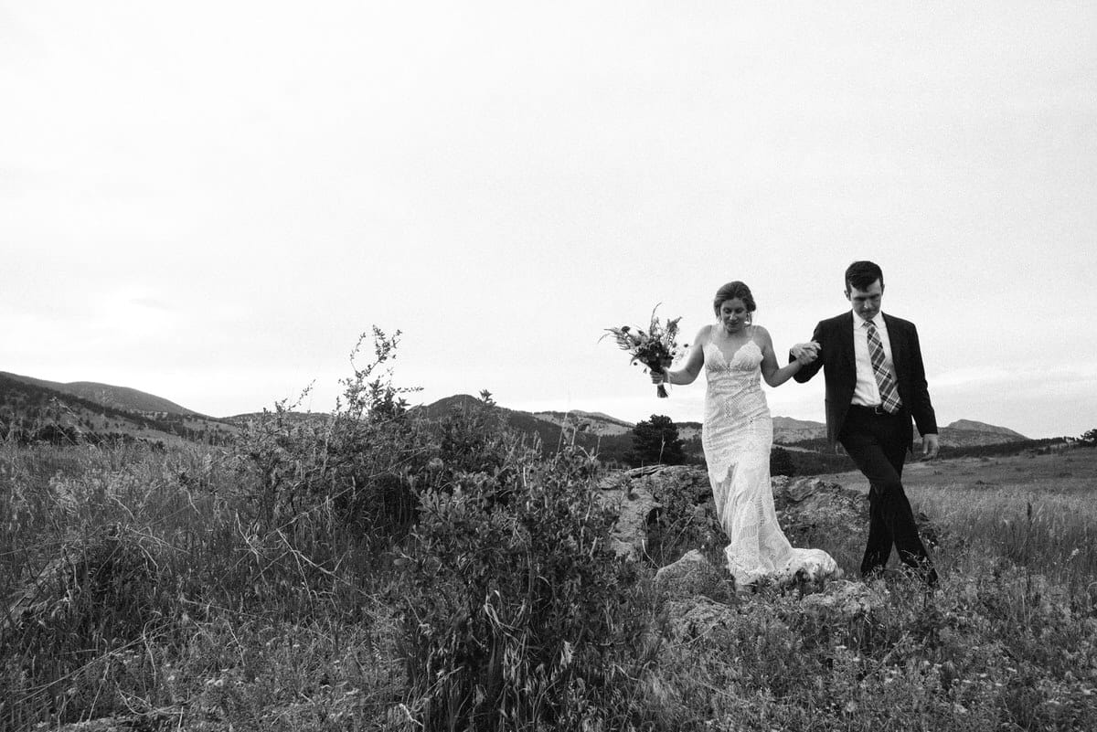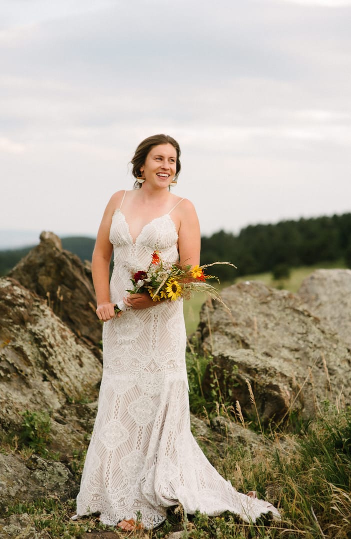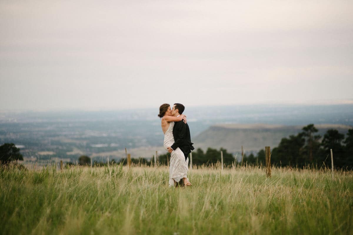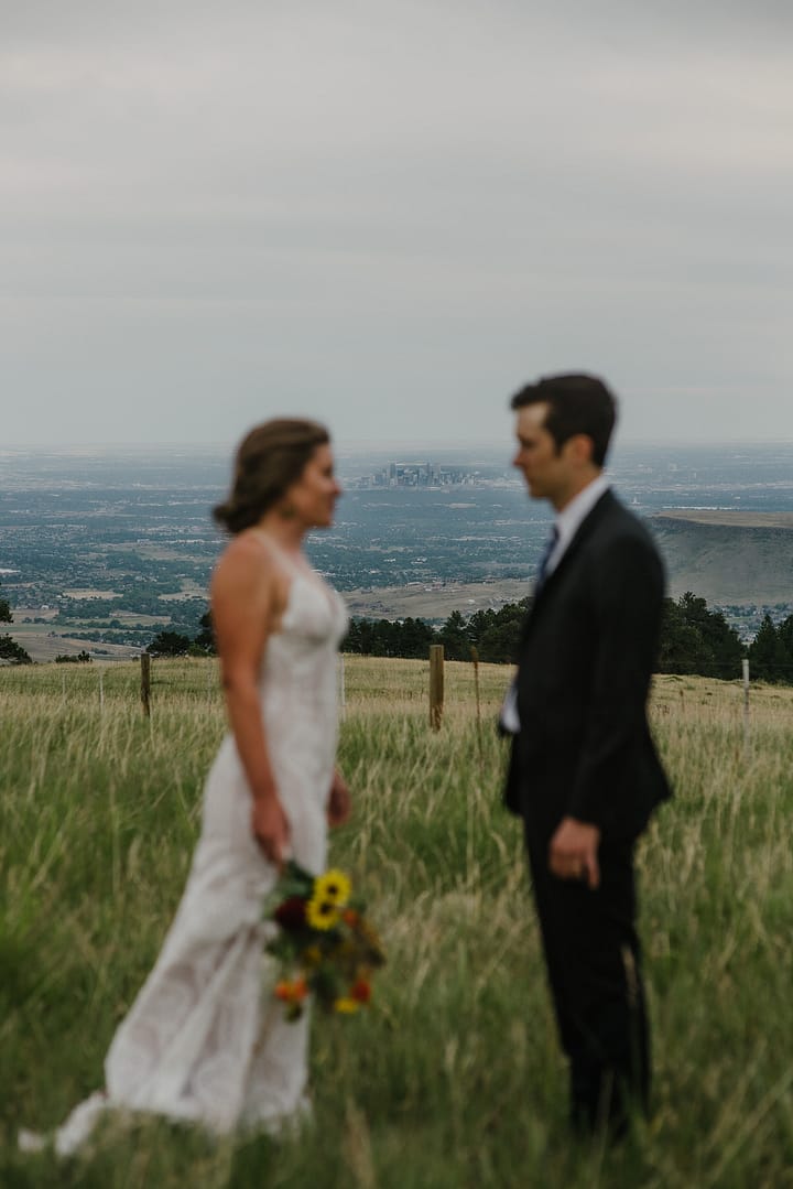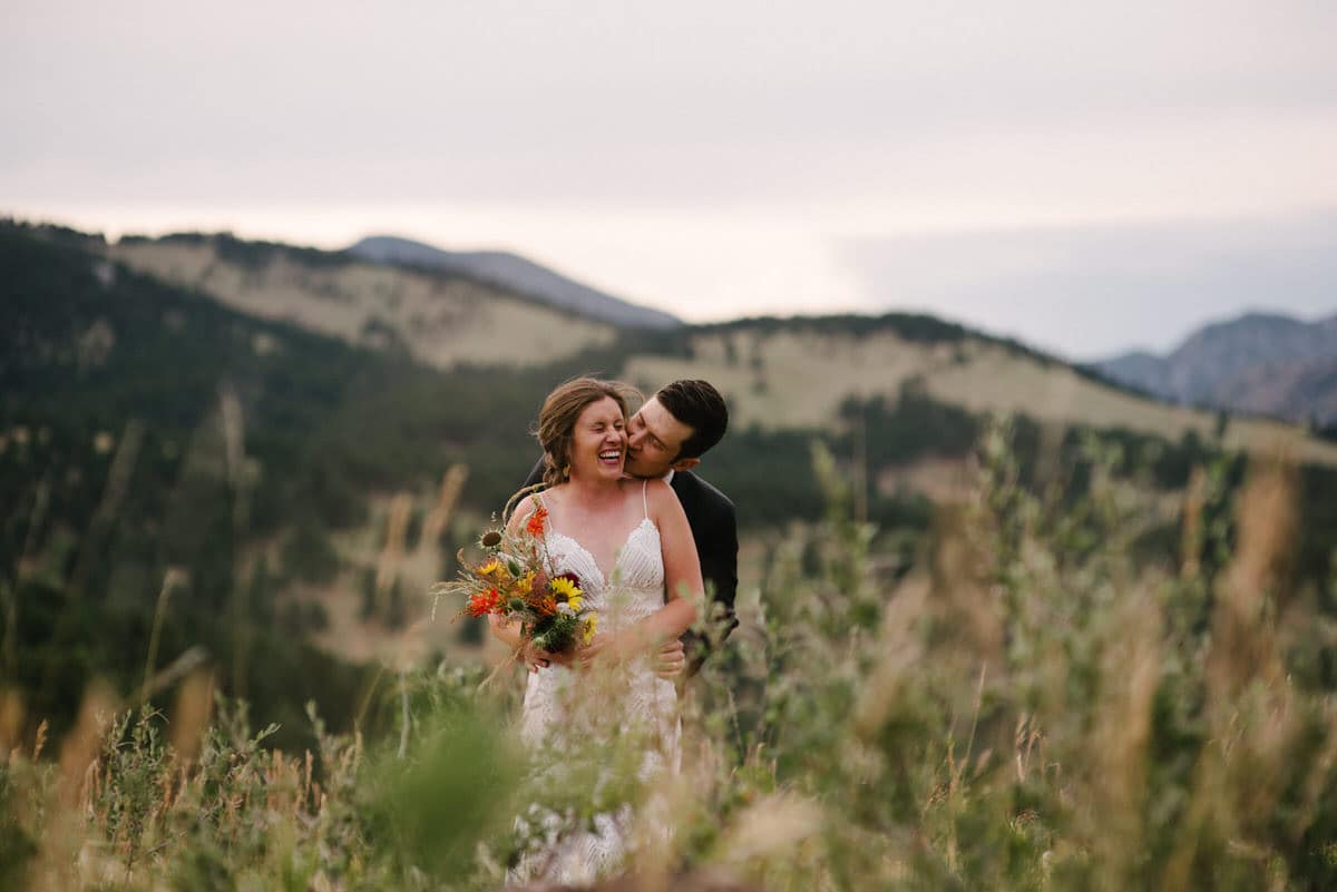 MG and Andrew were first faced with the tragedy, when Andrew’s mother died of cancer, which meant pushing up their wedding date in order to have her there, watching them give their Vows to one another by her hospital bedside. Fast forward to 2020 when they were going to celebrate with their friends and family by throwing the wedding and reception they never had, when the pandemic hit-making gathering and travel unsafe and impossible. So these two made the decision to put on their fancy wedding clothes, renew their Vows in a spot they loved in the foothills of Colorado, and finish the night off playing frisbee in the park and having a picnic with Pizza from Hop Alley. This can give inspiration to anyone who needs small wedding ideas.