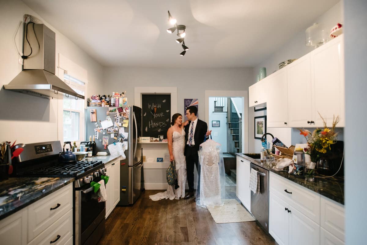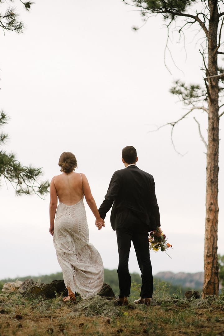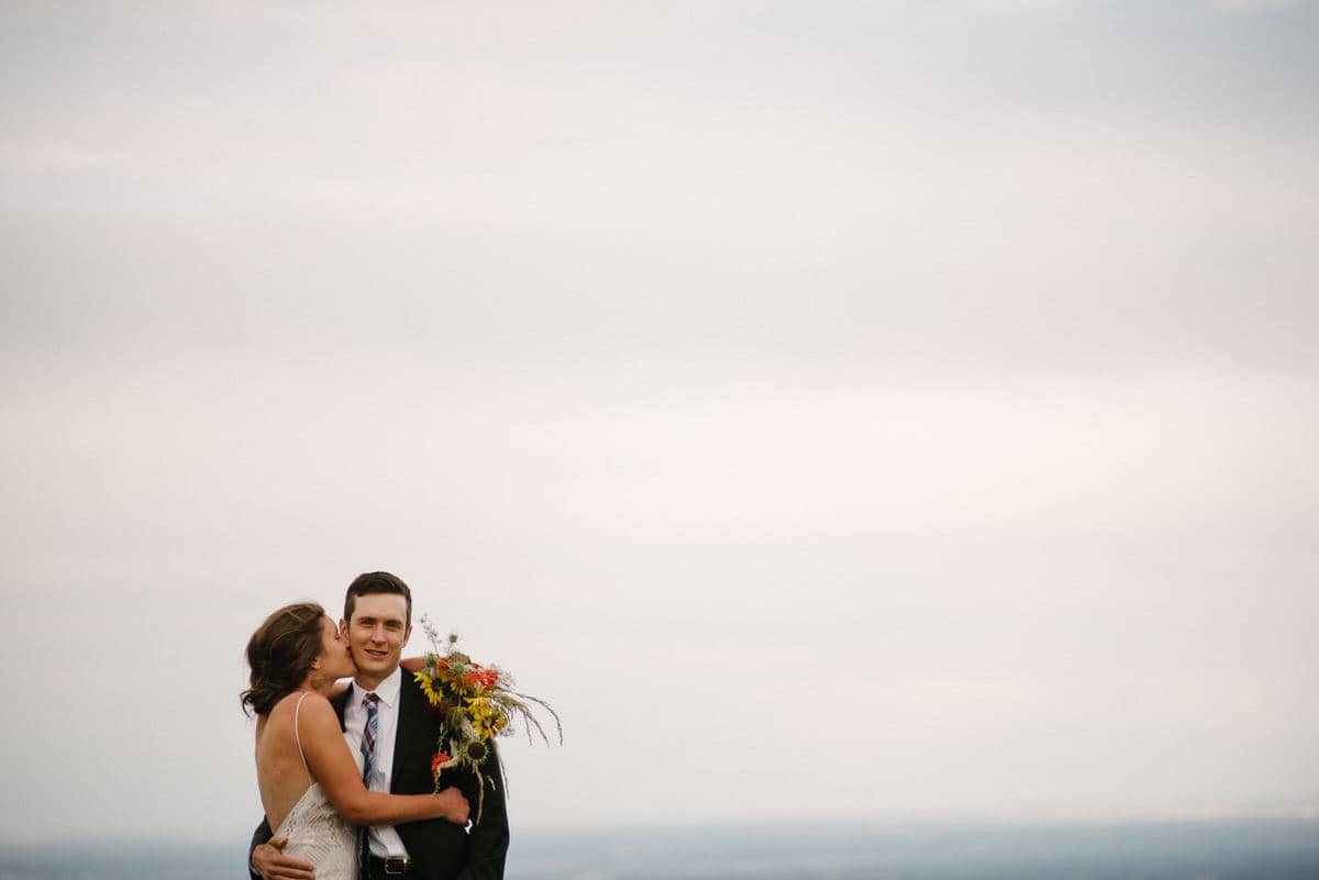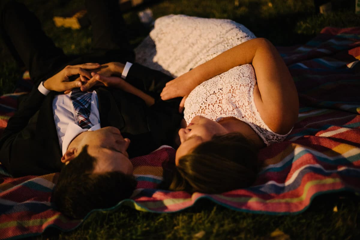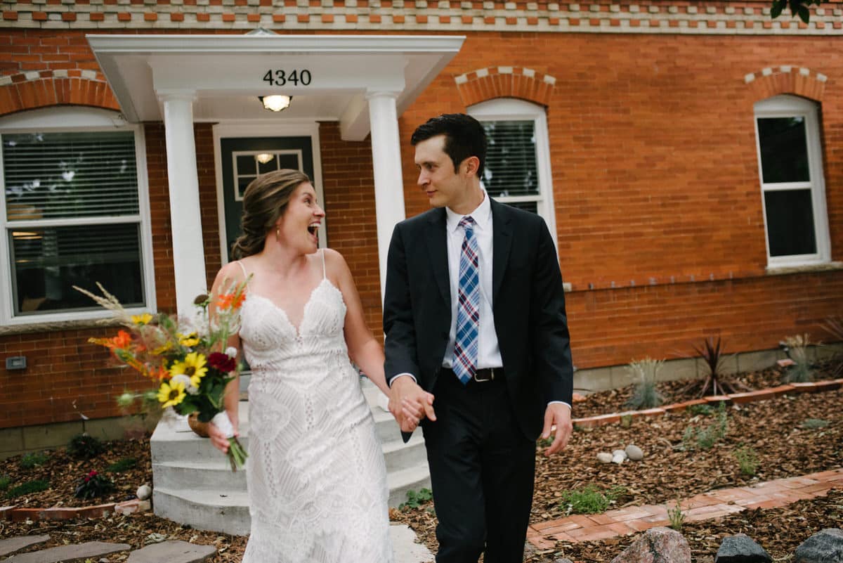 MG and Andrew were first faced with the tragedy, when Andrew’s mother died of cancer, which meant pushing up their wedding date in order to have her there, watching them give their Vows to one another by her hospital bedside. Fast forward to 2020 when they were going to celebrate with their friends and family by throwing the wedding and reception they never had, when the pandemic hit-making gathering and travel unsafe and impossible. So these two made the decision to put on their fancy wedding clothes, renew their Vows in a spot they loved in the foothills of Colorado, and finish the night off playing frisbee in the park and having a picnic with Pizza from Hop Alley. This can give inspiration to anyone who needs small wedding ideas.
